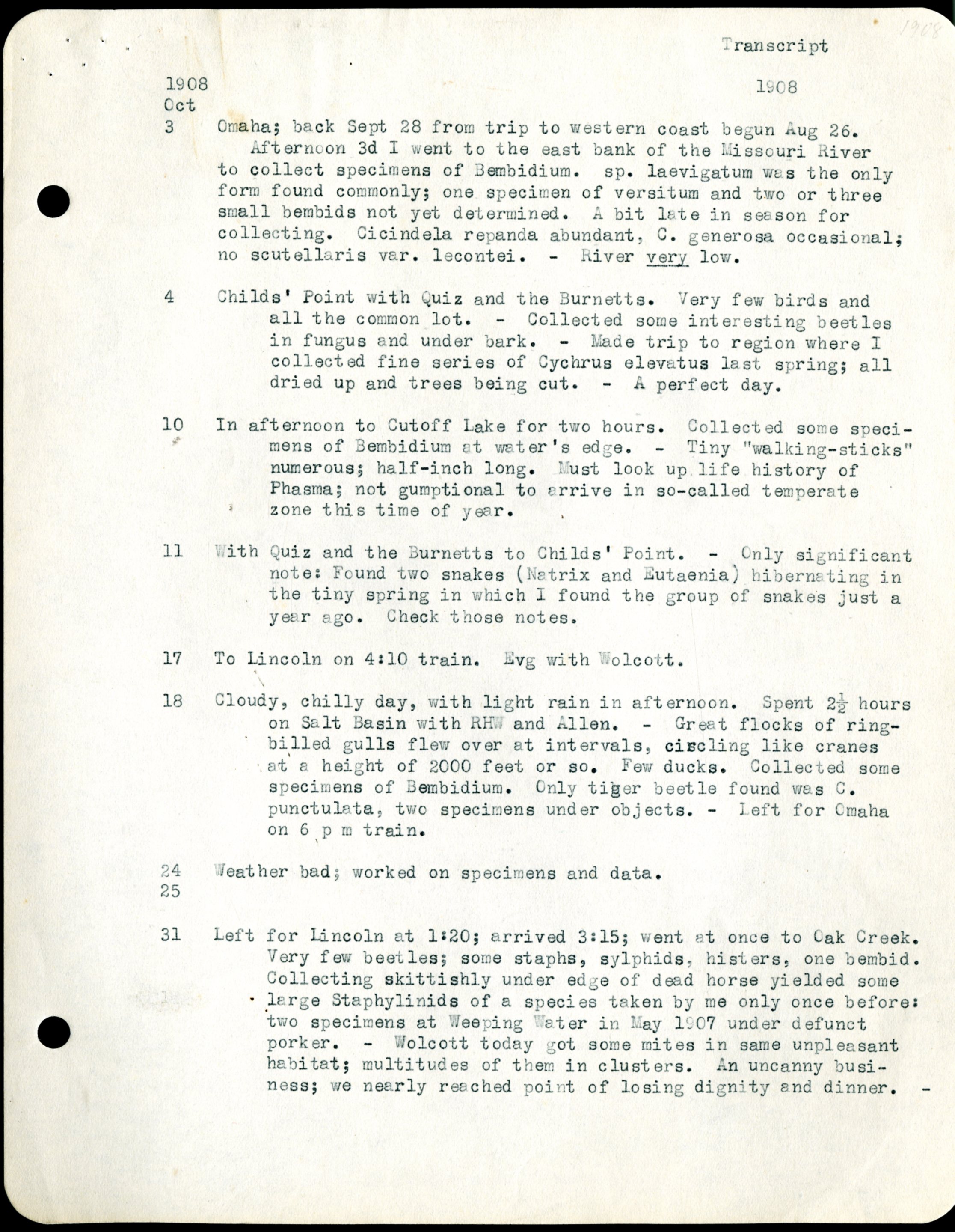 Frank H. Shoemaker, typescript, 1908, Aug. 26-Nov. 23