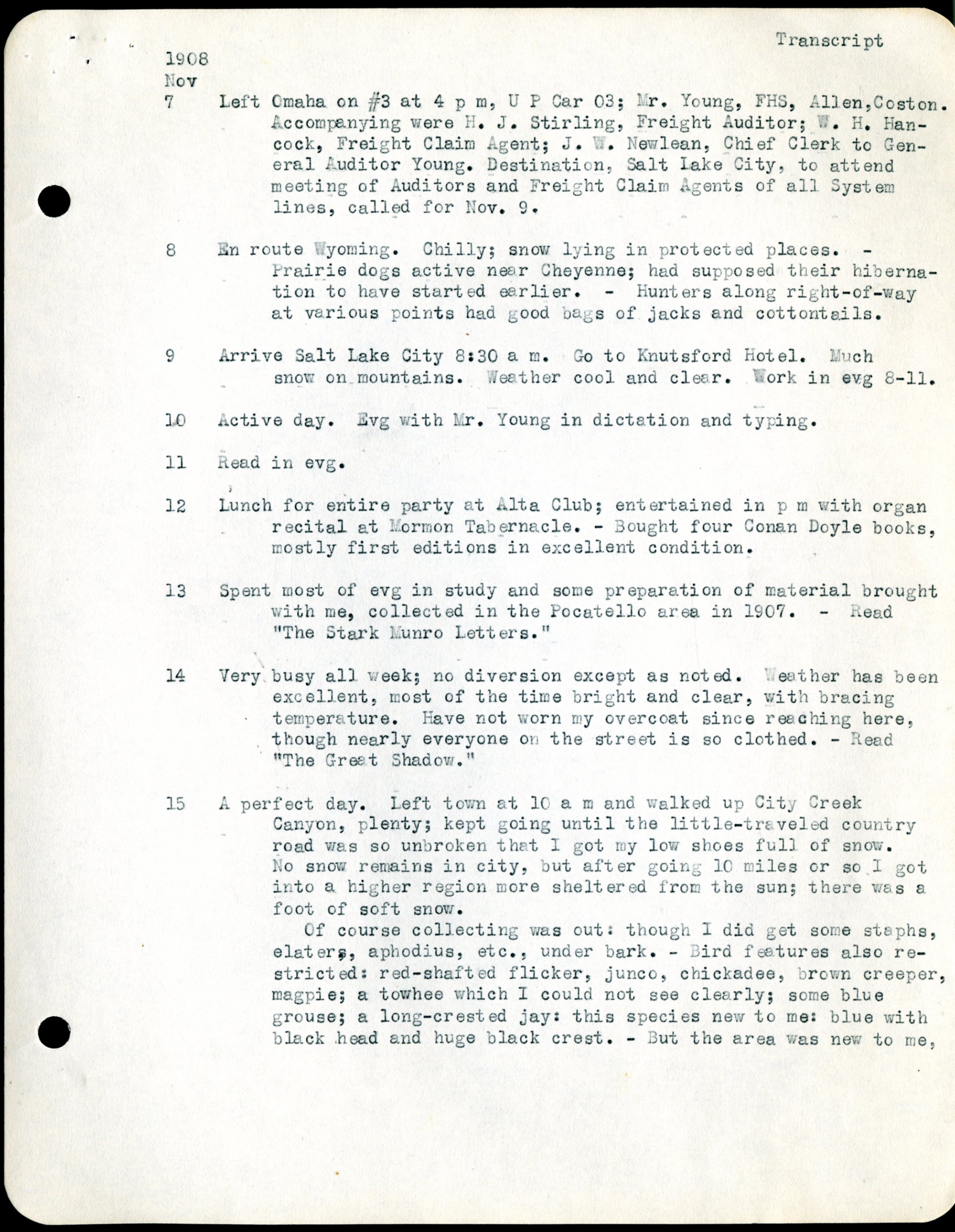 Frank H. Shoemaker, typescript, 1908, Aug. 26-Nov. 23