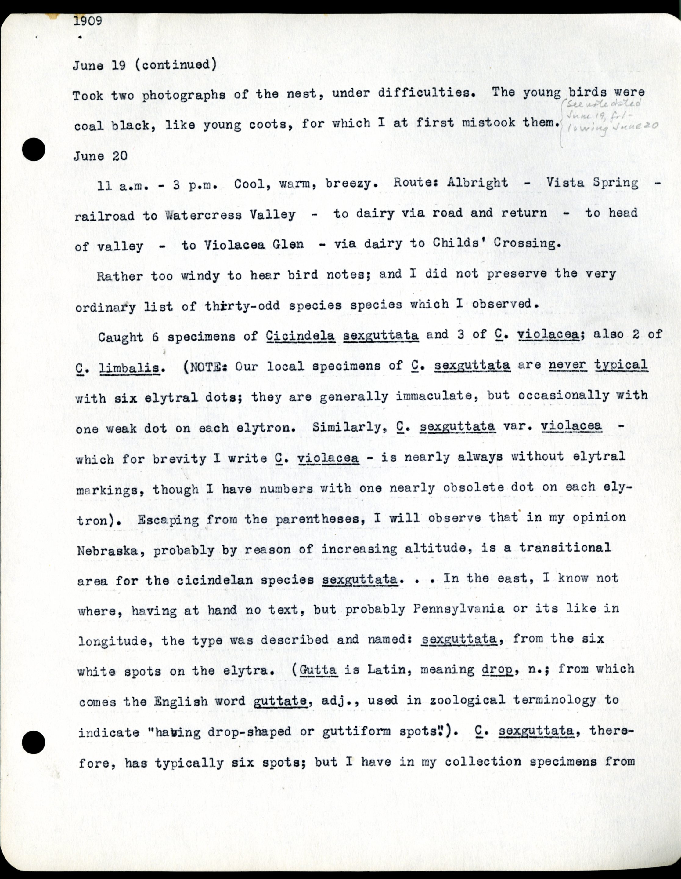 Frank H. Shoemaker typescript, 11 pages, notes and bird lists from field trip at Havelock, Nebraska, and areas surrounding Lincoln, Nebraska
