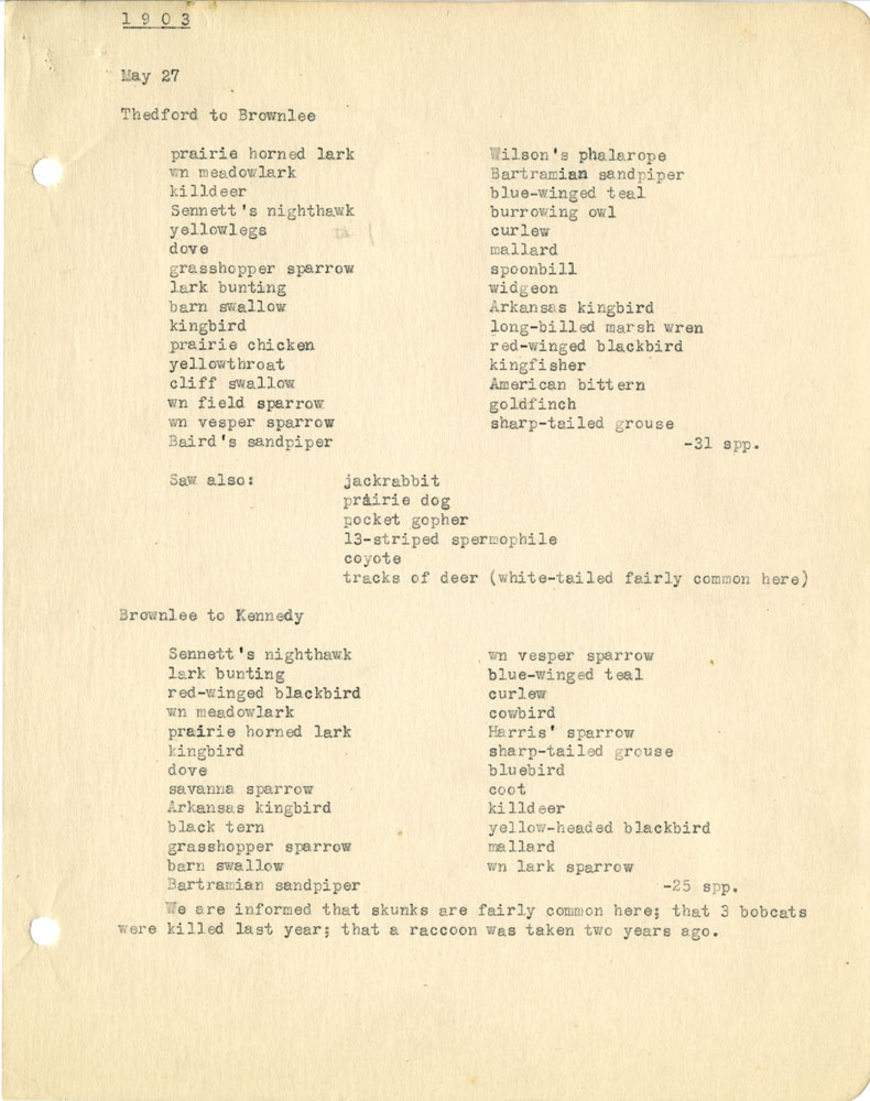 Thedford Bird Records, Thomas County, Nebraska, May 27-June 10, 1903