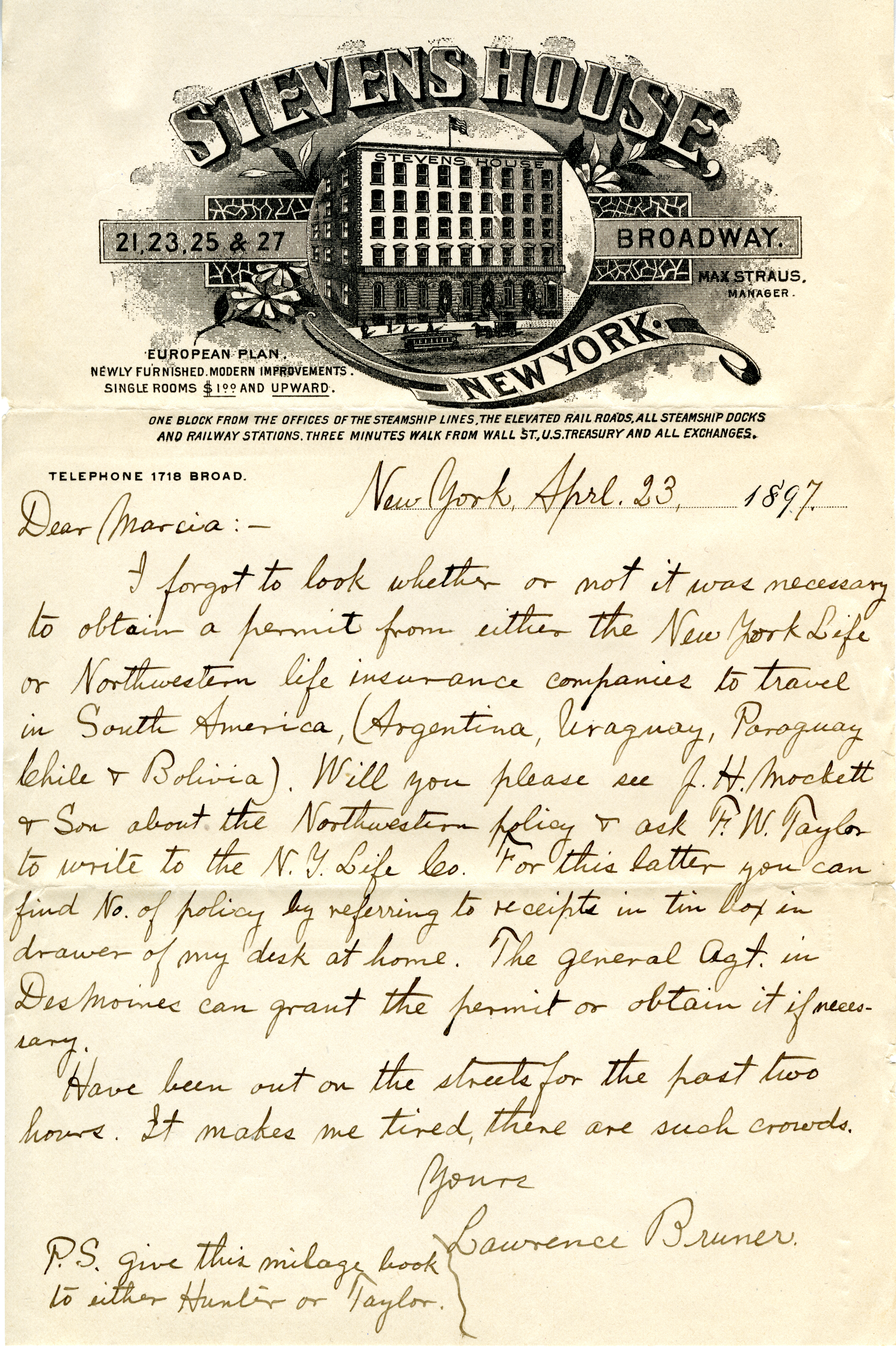 Lawrence Bruner to Marcia Bruner, 1897, Apr. 23