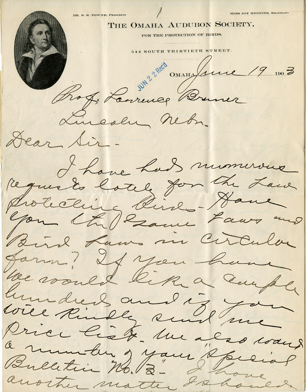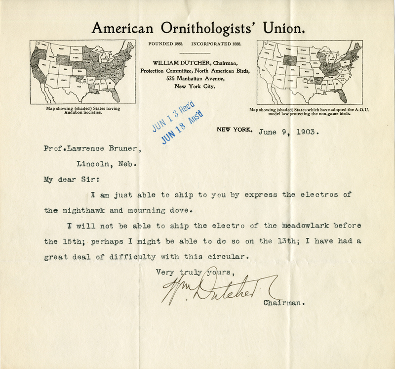 Nebraska Ornithologists’ Union, Letters, 1903, June