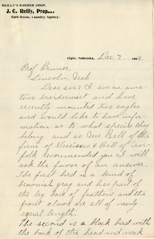 - Letter, Lawrence Bruner to J.C. Reilly, 1904, Dec. 7