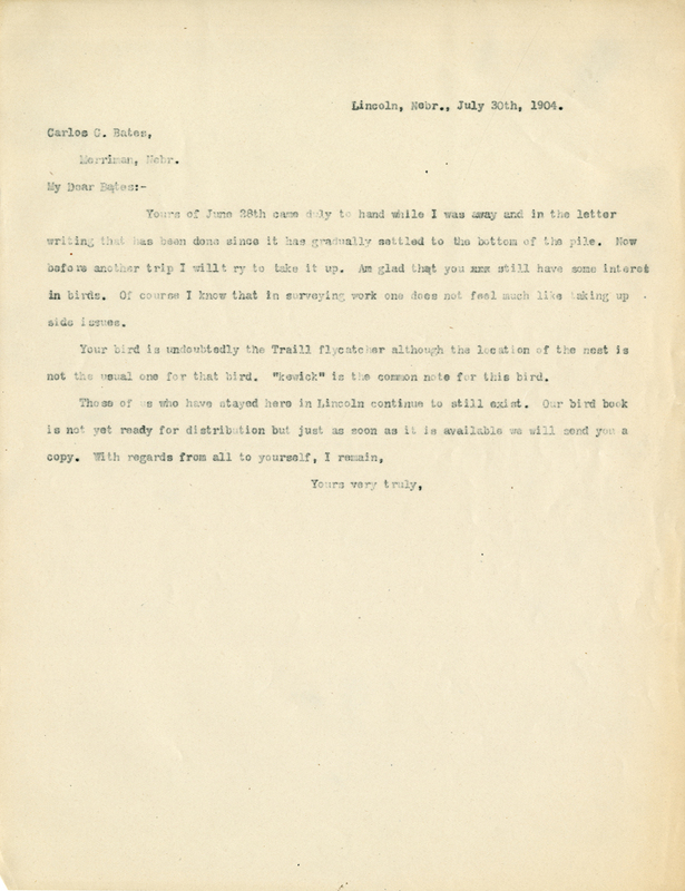 Nebraska Ornithologists’ Union, Letters, 1904, July