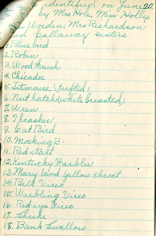 identified on June 20 by Mrs. Hole, Miss Holly, Mrs. Worden, Mrs. Richardson and Callaway sisters.