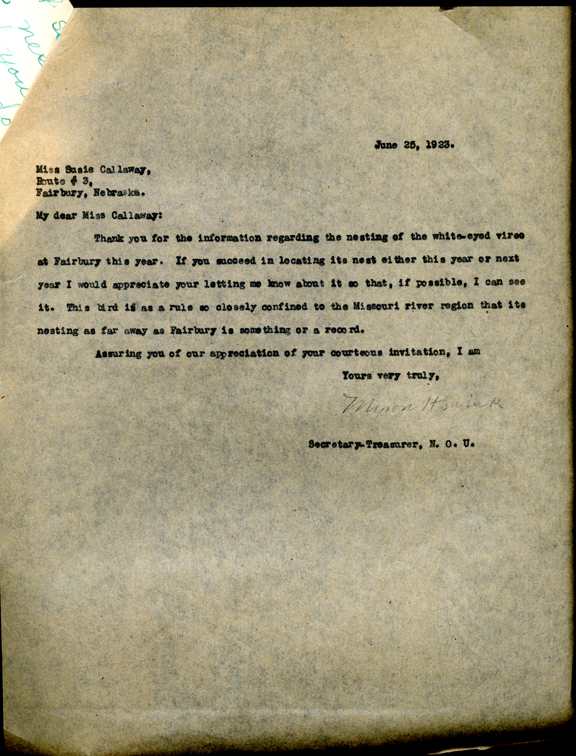 Nebraska Ornithologists' Union, Letters, 1923, June