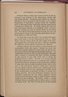 and to leave undone and unsaid the unpleasant. This was feature of Bessey's general life and in thus living he performed a service the extent of which is probably not appreciated by those unfamiliar with its magnitude and significance. But Bessey was best known to Nebraskans and to those in the University as "Professor" Bessey, the vigorous enthusiastic and devoted exponent of the cause of education and the fatherly friend of the student. Except for a few hundred dried specimens, many of which indeed were poorly prepared and even incorrectly named, there was no botanical equipment in the University when he entered upon his second and last professorship in this institution. Truly, Professor Bessey was all that there was of the department of botany in the University of Nebraska in 1884. But it was not long until there were students, laboratories, library, microscopes, herbarium and other equipment abundance. As a result of his labors and the stimulus of his teaching the herbarium has grown until now there are more than 35,000 specimens in the herbarium of the Botanical Survey of Nebraska and the general collection contains more than 300,000 additional specimens which represent nearly all of the floras of the world. The botanical library has grown from nothing in the beginning to a very useful collection containing several thousand botanical books, thousands of pamphlets, and nearly all of the leading botanical periodicals of home and foreign publication in complete files. The laboratories have grown from a room or two in University Hall or in the Old Chemical Laboratory and later to several rooms in Nebraska Hall. His department was always crowded and it is especially sad that he did not live to enjoy more commodious quarters in the new building which bears his name. Bessey's students were numbered by the thousands. One of his keenest delights was to page over the lists of former students of his department and to picture their lives and their labors, often in distant lands, all contributing of their thought and effort to the advancement of science and the -