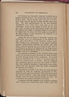 At Nebraska also Chancellor Andrews' headship was a period of marked growth. The student total advanced from 2,256 to 3,611. On the faculty, with some sort of professorial rank, were 56 persons in 1900, and 390 eight years later. The total appropriations for his last biennium ($1,330,067) were nearly three times that of his first ($475,000). Even so, the supply of funds did not keep pace with his sense of the University's needs; and when the regents once added a thousand dollars to his salary, he begged that, "so long as the University is compelled to the rigid economy it now exercises," he "continue to be paid at the present rate." Among the main decisions of Chancellor Andrews' administration were, the establishment of the Medical College, under Dean Ward; of the Teachers' College, under Dean Fordyce; the construction of the physics building, museum, administration building, the Temple, and many others; and the bringing into our faculty of such men as Professors E. A. Ross, G. E. Howard, M. M. Fogg, Roscoe Pound, H. H. Waite, H. K. Wolfe, A. S. Johnson, Hutton Webster, and H. B. Alexander. The splendid personality of Dr. Andrews made itself widely felt through constant lecturing and public activity, as well as through steady literary production. For several years he maintained also a course in practical ethics to which the students came in throngs. Here he displayed that remarkable skill in exposition and virility in discussion, that wonderful blending of high ideals, horse sense, humor, and racy anecdote, which had earlier established his eminence as a teacher. Compelled by ill health to lay down the chancellorship, December 31, 1908, Dr. Andrews, accompanied by Mrs. Andrews, spent some years abroad. They even went around the world in 1909-10. Later they retired to Interlachen, Florida, where his death occurred October 30, 1917. He is buried on the campus of Denison University. A selection from the writings of Dr. Andrews, omitting many sermons and articles and minor works, yields the -