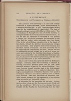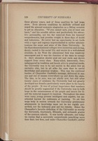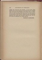 serves the varied life of a civilized commonwealth must do so by building for all its arts and all its professions: no trivium, no quadrivium, can plot the University course of the future; rather there must be a multi-vium, a branching into the manifold paths along which men's activities move. Yet this, be it not forgotten, cannot be without some general orientation: there must be the initial course which gives the true direction followed by all the branches and leads to the one end of all which we call human progress. That initial course and true orientation Nebraska fortunately received from her first college, devoted to the liberal learning which must always be the inspiration and the guide of her institutional life, as it is the soul of her final mission. Nebraska's past, then, is the prophecy of her future, and in it her future is to read. In a material sense it means continued years of building—which, indeed, is one of the noblest of human activities, for there is no truer index of the greatness of human civilization than is the greatness of architecture. Today most of the sciences are well housed on the several campuses, but there are still to come the housing for the library (whose free use is us life-giving respiration to the institution), the erection of a museum to preserve both the natural history treasures in which Nebraska is rich and the treasures of art which with encouragement and devotion she will yet create, the assembly hall which shall give a place for the University's formal dignities, and the dormitories which should give comfort and esprit to the crowding generations of students. All these must come in time, and with them, we may hope, broad-branched campus trees and grassy plots, remindful of scholastic revery [sic]. But inwardly and truly these can be only an outward symbol of the one genuine and lasting Spirit of the University, through which, while it lives, the University will continue to live and to grow in greatness, and which itself is neither more nor less than that love of learning and that faith in the natural devotion of Nebraska boys and girls to unselfish knowledge in which the first -