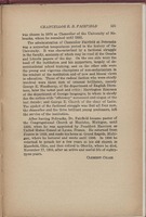 was chosen in 1876 as Chancellor of the University of Nebraska, where he remained until 1882. The administration of Chancellor Fairfield at Nebraska was a somewhat tempestuous period in the history of the University. It was characterized by a factional struggle in the faculty, accounts of which may be read in the Omaha and Lincoln papers of the day. On the one side were the head of the institution and his supporters, largely of denominational school training, and on the other side were the young and vigorous champions of non-sectarianism in the conduct of the institution and of new and liberal views in education. Those of the radical faction who were chiefly involved were three men of unusual brilliance, namely George E. Woodberry, of the department of English literature, later the noted poet and critic; Harrington Emerson of the department of foreign languages, to whom is chiefly due the nation-wide "efficiency" movement and slogan of the last decade; and George E. Church of the chair of Latin. The upshot of the factional struggle was that all four men, the chancellor and the three brilliant young professors, left the service of the institution. After leaving Nebraska, Dr. Fairfield became pastor of the Congregational Church at Manistee, Michigan, until 1889, when he was appointed by President Harrison as United States Consul at Lyons, France. He returned from France in 1893, and made his home at Grand Rapids, Michigan, where he lectured and wrote until 1896. In 1896 he returned to preach for a few years at his old church in Mansfield, Ohio, and then retired to Oberlin, where he died, November 17, 1904, after an active and useful life of eighty-three years. CLEMENT CHASE. -