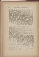 and Samuel DeWitt Beals, superintendent of public instruction. The first constitution of the state made no provision for the office of superintendent of public instruction, but "An Act to Establish a system of Public Instruction for the State of Nebraska," passed on the same day as the act to establish the state university, created the office and authorized the governor to appoint a superintendent whose tenure should continue until January 1, 1871, when he would be succeeded by the person chosen at the regular election of 1870. Accordingly, on the next day after the passage of the act, the governor appointed for nomination for the office in the Republican state convention of 1870, but was defeated by John Murray McKenzie, who therefore succeeded to both offices. Subsequently Mr. Beals had a long career as a teacher in the public schools of Omaha. On February 28, 1871, the two houses of the legislature, in joint convention, elected Dwight J. McCann, of Otoe county, in place of Elliot; Maxfield (still credited to Cass county) and Bruner, each as his own successor; all for the full term of six years from March 1, 1871. Similarly, on the 29th of January, 1873, the legislature elected William D. Scott, of Rulo, Richardson county; James W. Savage, of Omaha; and William Adair, of Dakota City, regents for the full term from March 1, 1873. On the 16th day of February, 1875, the legislature passed a joint resolution declaring that the office of regent from the first judicial district was vacant because McCann, the nominal incumbent, had removed from the state and had not attended any meeting of the board during the last eighteen months. On the same day and in like manner, the place to which Maxfield had been elected, from the second district, was declared vacant because he had moved to the first district—from Plattsmouth to Beatrice. On the same day the legislature elected Edgar M. Hungerford, of Orleans Sentinel, Harlan county, in the first district, in McCann's place, and Samuel J. Tuttle, of Lincoln, Lancaster county, in the second district, in Maxfield's place. Charles A. Holmes, of Tecumseh, Johnson county, in the first dis- -