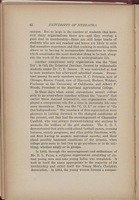 it; and it became the subject of state legislation when its stand in favor of prohibition helped to place Lincoln in the dry column. Not only has the city furnished practice in politics and chance for observation of courts and legislatures, but opportunity for social work as well. Investigations of a great variety of social problems, ranging in importance from class and seminar papers to doctoral theses, have been based on local data. Students carry on their field work in the social sciences through numerous community agencies—charitable, penal, educational, industrial, recreational, health, and religious. To a great degree the city recognizes the responsibility laid upon it through the presence of a large student body. There is a conspicuous absence of any desire to exploit it on the part of the city at large. Its tastes are catered to—perhaps too largely but at least indulgently—in amusements; and the program of the churches is shaped with the students in mind. Their presence has always furnished a talking point for civic reform, and on their account various agencies which might contribute to their demoralization have undoubtedly been more easily disposed of, or have received stricter supervision. The University justifies its existence best by the service it renders. This consists primarily in the training for leadership; but its second service is the practical help given by men and women of broad study to the problems of the community. More and more must this latter function be exercised, and the community served be enlarged from the locality in which the University is situated to include every town and open country district in the state. HATTIE PLUM WILLIAMS. -
