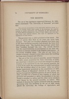THE REGENTS The act of the legislature approved February 15, 1869, which established "The University of Nebraska" provided that The general government of the university shall be vested in a board of regents, which shall consist of the governor, the superintendent of public instruction, the chancellor of the university, all of whom shall be members by virtue of their offices, and three persons from each judicial district, who shall be appointed by the legislature in joint session. The governor was ex officio president of the board. The term of service then fixed at six years has never been changed. This plan was doubtless adapted from Iowa, just as the first territorial assembly had adopted the Iowa civil and criminal code. The English deprecatingly admit that they "muddled through" the war. The records disclose that the experimentation in government of our state universities is scarcely entitled to the English faint praise. It has merely muddled along. The case of our Iowa examplar is typical—though in some other states the fumbling has been more frequent and effusive. The act of the first general assembly, passed February 25, 1847, which established the State University of Iowa, provided that it should be governed and managed by fifteen trustees, to be appointed by the first general assembly for a term of six years, the superintendent of public instruction to be the presiding officer of the board. After an unfortunate experiment, permitted by the constitution of 1857, with a "Board of Education" elected by the people, but having incongruous legislative powers, an act of March 21, 1864, provided for a board of nine regents, of which the governor was president ex officio, the president of the university a member ex officio, and the other seven members were chosen by the general assembly, as before. This method of choosing the regents continued until the separate governing body was abolished by the act of 1909, which placed the university, the College of Agriculture and -