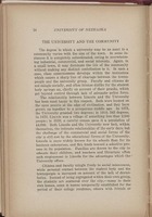 THE UNIVERSITY AND THE COMMUNITY The degree to which a university may be an asset to a community varies with the size of the town. In some instances it is completely subordinated, owing to overwhelming industrial, commercial, and social interests. Again, in a small town, it may dominate the life of the community without making any distinct contribution to it. In such a case, class consciousness develops within the institution which causes a sharp line of cleavage between the townspeople and the university group. Faculty and citizens do not mingle socially, and often intense dislike for the student body springs up, chiefly on account of their pranks, which get beyond control through lack of adequate police force. The relationship between Lincoln and the University has been most happy in this respect. Both were located on the open prairie at the edge of civilization, and they have grown up together to a prosperous middle age. In 1873, the University granted two degrees; in 1910, 343 degrees. In 1870, Lincoln was a village of something less than 2,500 people; in 1910, a careful census gave it a population of 44,000. Both Lincoln and the University now lack, within themselves, the intimate relationships of the early days, but the challenge of the commercial and social forces of the city is still met by the educational forces of the University. Lincoln is more widely known for its schools than for its business enterprises, and this tends toward a selective process in its population. Families are drawn to the city to educate their children, and teachers and librarians often seek employment in Lincoln for the advantages which the University offers. Citizens and faculty mingle freely in social intercourse, while personal contact between the student body and the townspeople is increased on account of the lack of dormitories. Instead of being segregated within their own group, the students are scattered over the city,—many in their own homes, some in homes temporarily established for the period of their college residence, others with friends or -