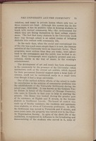 relatives, and many in private homes where only two or three roomers are kept. Although this system has its disadvantages, it has its positive value in keeping students in touch with normal community life,—the environment for which they are fitting themselves by their college experiences. The fact that many students in the University work their way through school is an added means of bringing students into contact with community life. In the early days, when the social and recreational life, of the city was much more simple than it is now, the literary societies of the University were an important factor. Their programs, more serious than they are today, were advertised in the newspapers and the public was invited to attend. Many townspeople were regularly present and contributed, chiefly in the way of music, to the evening's entertainment. The development of art and music has been stimulated in the community by the presence of the University; while institutions such as the annual art exhibit, which depend for their permanent financial support upon a large body of citizens, could not be maintained easily in a small town even though it had a large university. One of the earliest definite efforts of the school to make its contribution to the solution of community problems was the establishment of the University Settlement during the school year, 1895-1896. It was known as the Graham Taylor House, in honor of the founder of Chicago Commons, who came to Lincoln in that year to help in starting the project. The House was located, during the greater part of its existence, at Eighth and X streets, in the foreign district in Northwest Lincoln. The board of control was made up of faculty members; the residents and assistants were students, or wives of University professors. In 1900, the Settlement was moved to Twentieth and N streets, and some years later, the property, was turned over to the Charity Organization Society. In spite of the short life of the institution, it registered its influence in the broadening and democratizing of the students who served in it, some of -