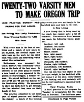 The Nebraska football team attempted to prepare for the Oregon Aggies. Coach Stewart feared the Aggies because of their strong showings earlier in the season and knew this would be a tough contest.