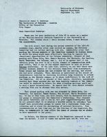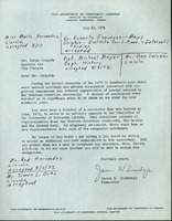 This is a letter that was sent to Grajeda and all other incumbent members of the Chancellor's Advisory Committee on Mexican-American Affairs. In the letter Zumberge asks Grajeda to continue on the committee for a second term. Handwritten at the top and bottom of the page are the names and addresses of the other members who received the same letter. Next to each name there is a notation which indicates the day on which the request was accepted by the individual. Note that the letter was sent in the end of July and all but Grajeda returned affirmative replies to the Chancellor with in a few weeks. Grajeda's reply comes during the secon week of classes and is a long letter detailing the reasons why he is declining. -