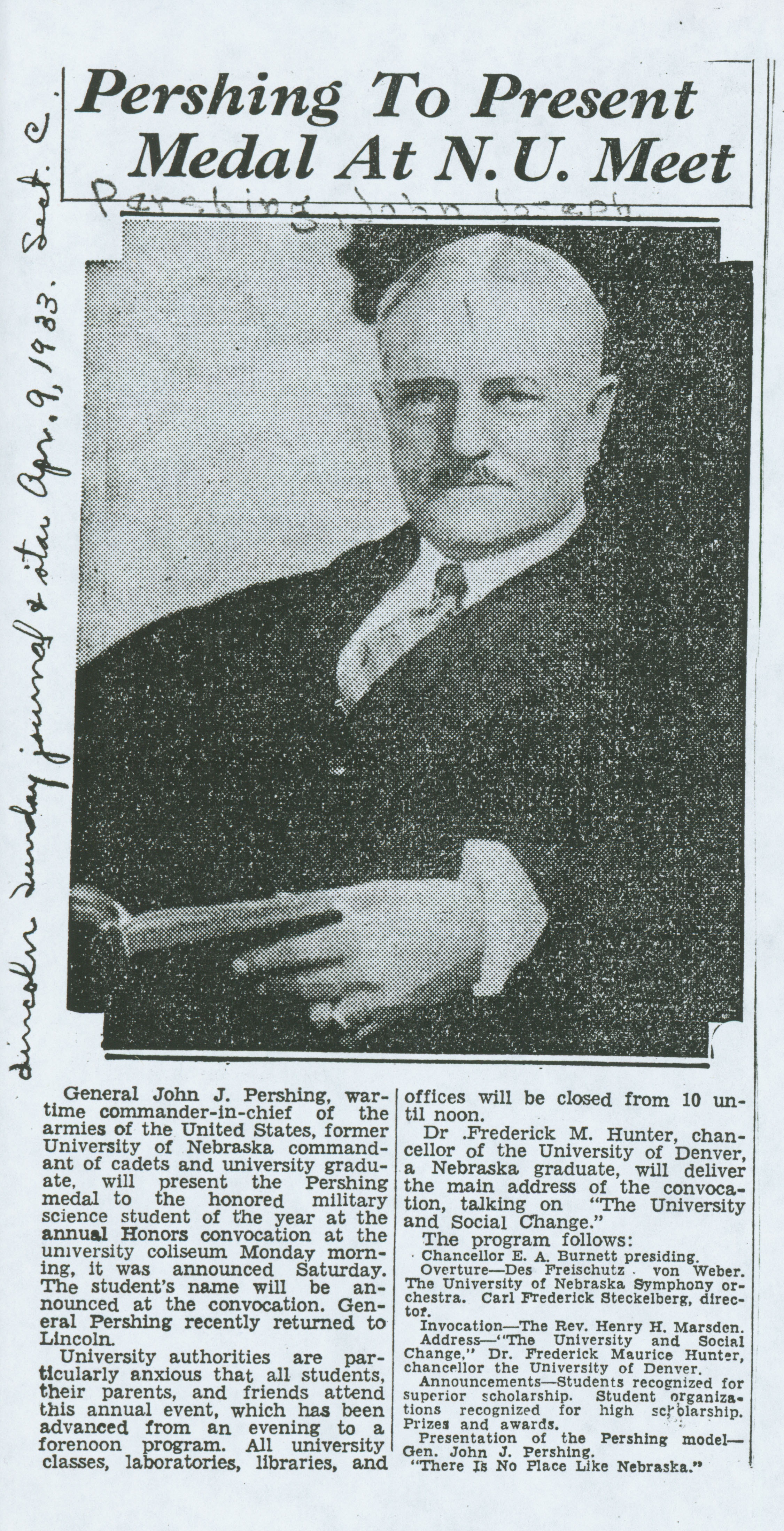- General Pershing Pershing presenting Pershing medal to honored military science students of the year at the annual Honors convocation at the University Coliseum in 1938.