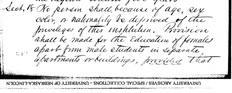 Sect. 18 No person shall, because of age, sex, color, or nationality be deprived of the privileges of this institution. Permission shall be made for the Education of females apart from male students in separate apartments or buildings, provided that